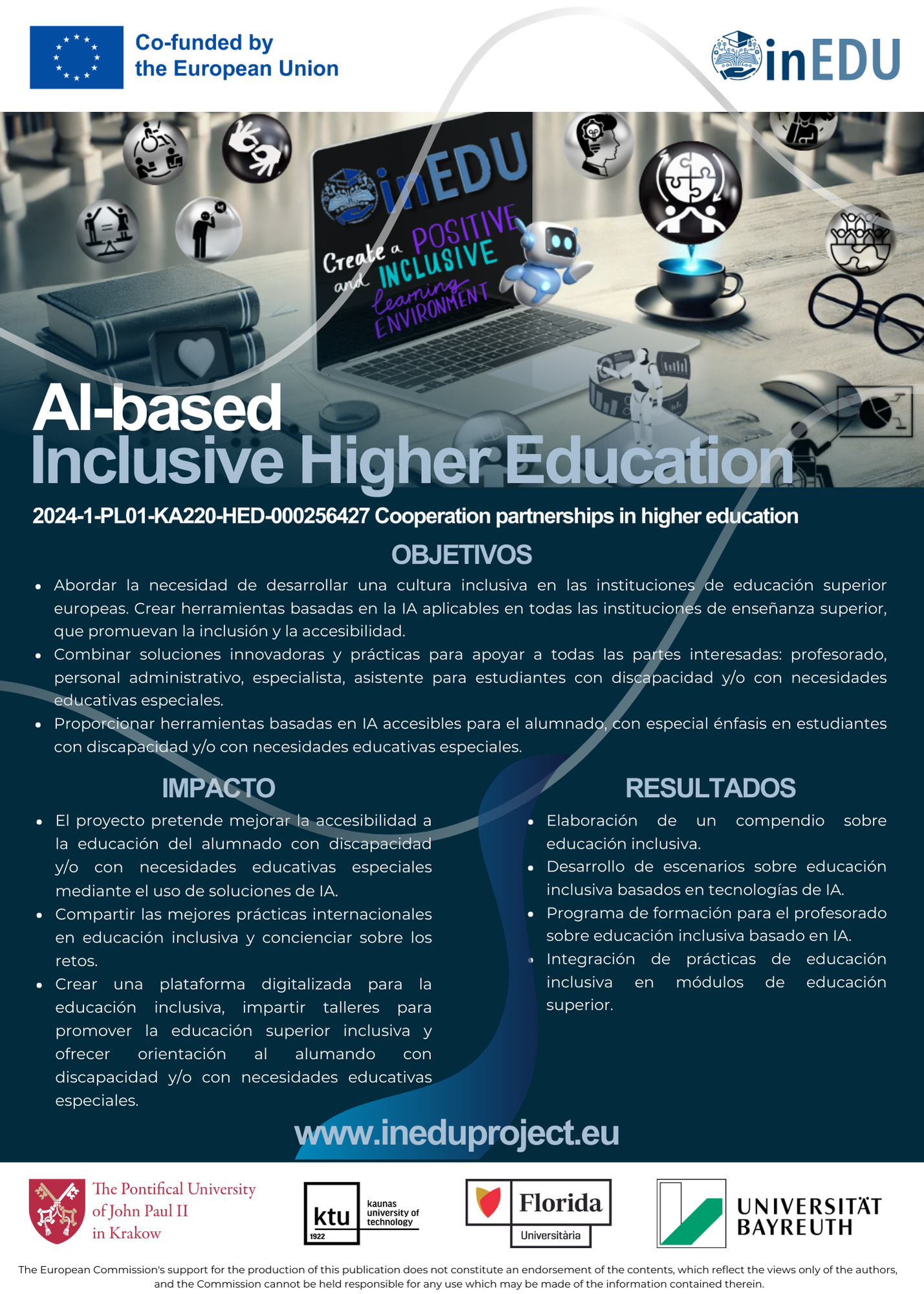 El proyecto INEDU se centra en el apoyo a estudiantes con discapacidad mediante el uso de herramientas basadas en inteligencia artificial.